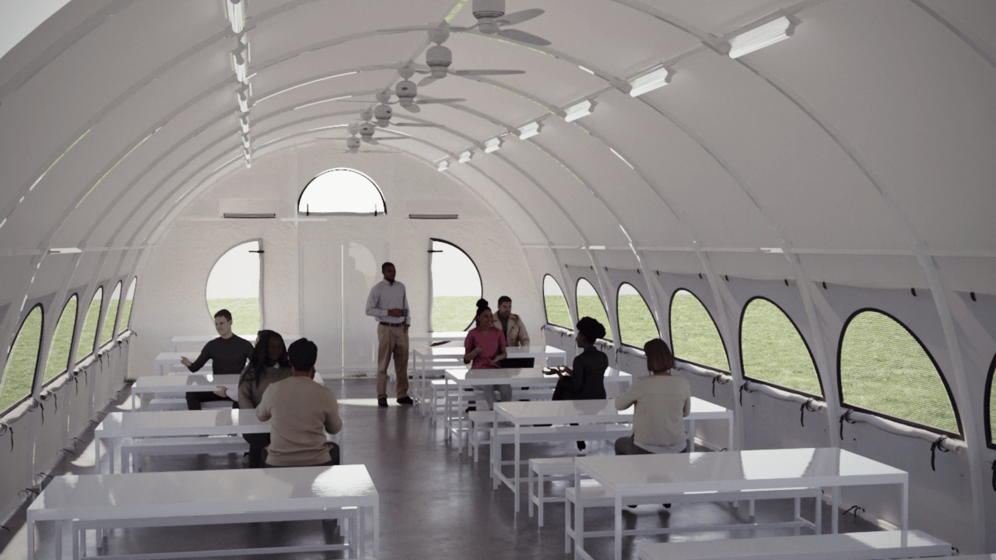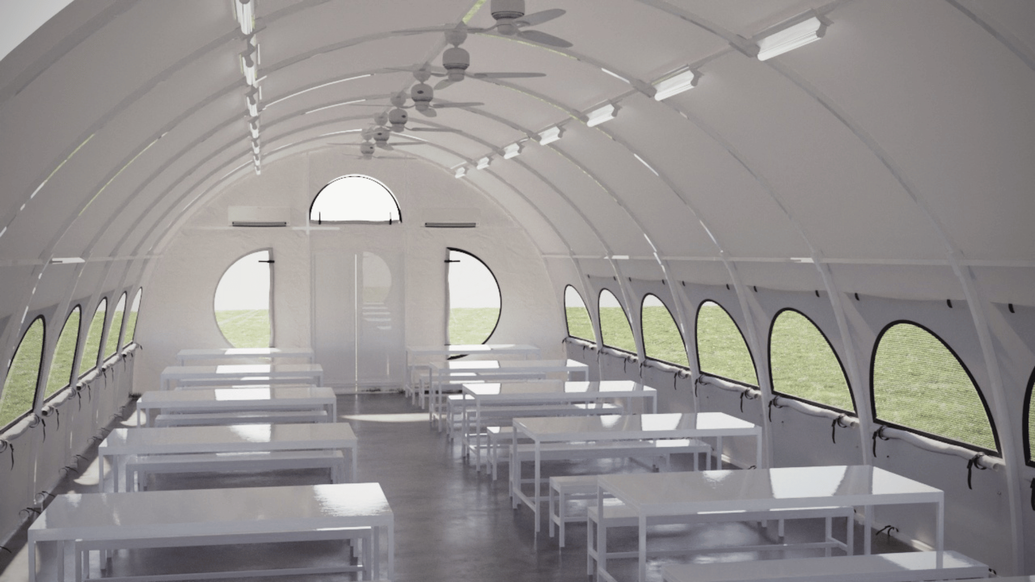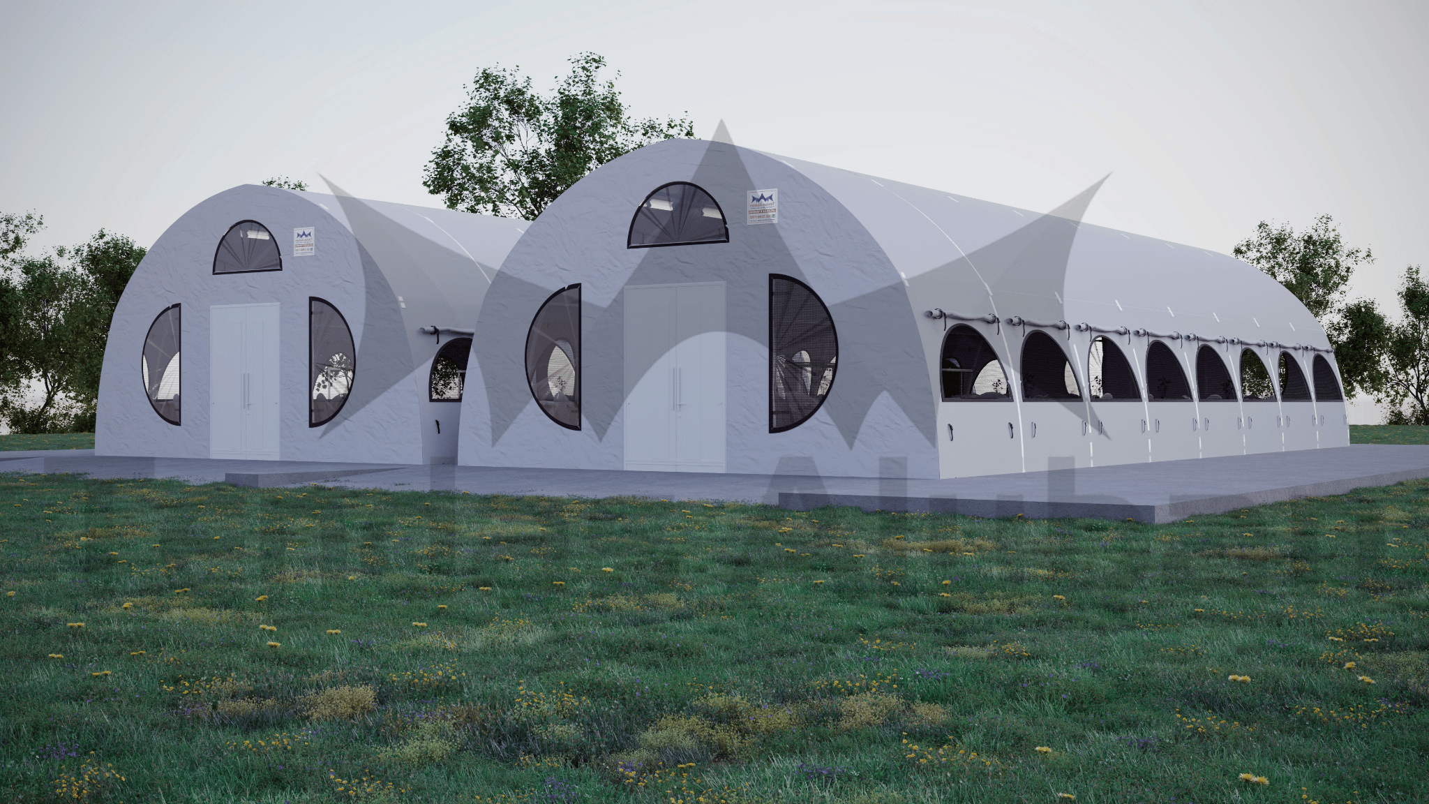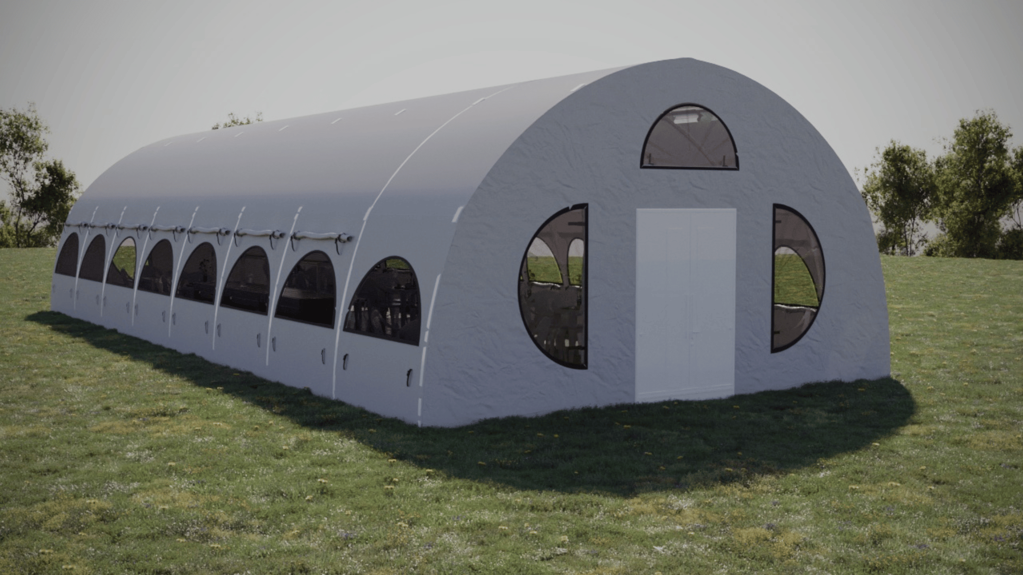 A Tenda Carpa possui formato semicircular, com 8 metros de largura e 4 metros de